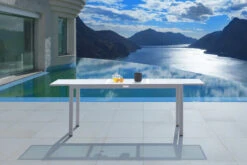 VILLANA Ausziehtisch, Silber/weiß, Alu/Sicherheitsglas, 160/220×90 Cm, Flügelmechanismus