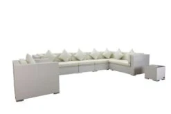 OUTFLEXX Loungemöbel-Set, Weiß, Polyrattan, Für 8 Personen, Inkl. Kaffeetisch, Wasserfeste Kissenbox