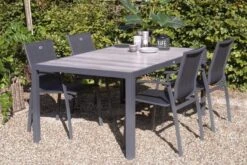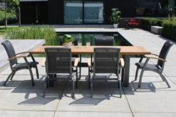 HARTMAN Fontaine Esstisch, Anthrazit/beige, Aluminium/Teak, 220x100cm, U-Gestell, FSC Teak