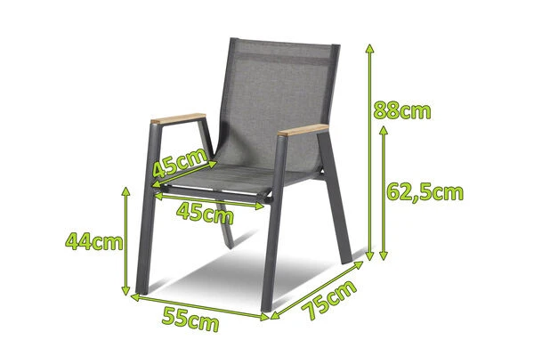 HARTMAN Aruba Stapelsessel, Xerix/anthrazit, Alu/Textilene, Mit Armlehnen Aus Teak