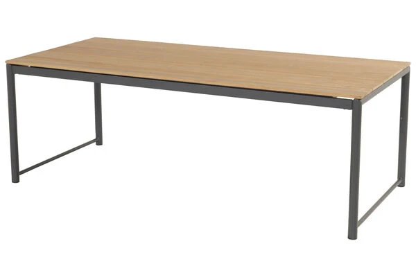 Die Tischleisten aus FSC-zertifiziertem Teakholz verleihen diesem Tisch einen ganz besonderen Charme. Darüber hinaus ist Teakholz besonders witterungsbeständig und hält sowohl Hitze und Frost, als auch Regen und Feuchtigkeit aus. Es hat außerdem aufgrund des hohen Anteils an holzeigenen Ölen einen natürlichen Schutz gegen Pilze und andere Schädlinge.