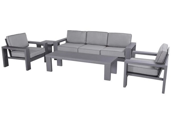 Freuen Sie sich darauf auf dieser Loungegruppe die Sonne mit Ihren Liebsten zu genießen. Das Zusammenspiel der verwendeten Farben und Materialien gibt dieser Lounge ihr einzigartiges und hochwertiges Aussehen. Dank des robusten Aluminiumgestells kann die Lounge problemlos das ganze Jahr über im Freien stehen bleiben, lediglich die Polster sollten Sie bei starkem Regen sicher verstauen.