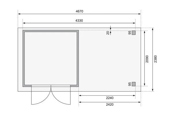 - Artikelbezeichnung: Askola 2 im Set mit Anbaudach 2,40 m Breite und 19 mm Rückwand