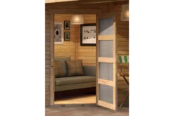 Das Gartenhaus Askola aus nordischer Fichte von KARIBU wird aus 19 mm Wandbrettern im Steck-/Schraubsystem gefertigt und kann somit rasch und einfach aufgebaut werden. Das praktische Flachdach aus Massivholz sorgt dafür, dass das Gartenhaus schnell und wirkungsvoll gegen Witterungseinflüsse geschützt ist. Dank der Seitenhöhe von ca. 195 cm und einer Firsthöhe von ca. 211 cm sorgt das Haus innen für viel Platz. Kesseldruckimprägnierte Bodenbalken sorgen für optimalen Schutz gegen aufsteigende Feuchtigkeit. Durch die Positionierung unter dem Gartenhaus schützen die Bodenbalken effektiv vor Staunässe und Spritzwasser. Das Gartenhaus wird mit der, praktischerweise schon vormontierten Tür, im stabilen Massivholzrahmen ausgeliefert und bietet dank der großen Öffnung bequemen Zutritt in das Haus. Nebenbei bietet sie effektiven Schutz vor Diebstahl. Gleichzeitig lassen die großzügigen Lichtausschnitte im jeweiligen Türflügel ausreichend Tageslicht in das Gartenhaus einströmen.