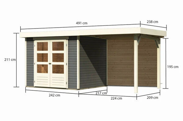- Artikelbezeichnung: Askola 3 im Set mit Anbaudach 2,40 m Breite und 19 mm Rückwand