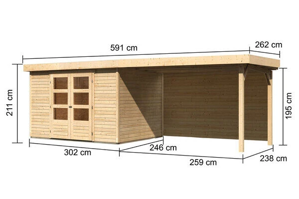 1x KARIBU Gartenhaus Askola 5 , naturbelassen , ca. 591,5 x 246 x 211 cm