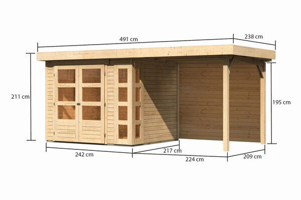 1x KARIBU Gartenhaus Kerko 3 , naturbelassen , ca. 508 x 217 x 211 cm
