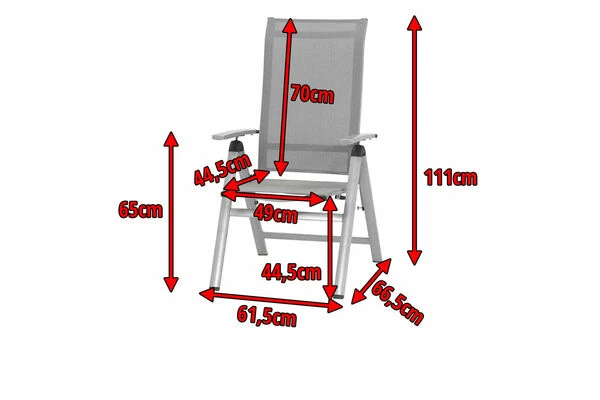 Der klappbare Sessel Fabulo verfügt über ein hochwertiges, silberfarben pulverbeschichtetes Aluminiumgestell, auf welches ein formstabiles sonntex®-Gewebe (75% Polyvinylchlorid / 25% Polyester) in Hellgrau aufgespannt wurde. Dadurch ist der Sessel sowohl wetterfest als auch pflegeleicht und sichert somit seine Langlebigkeit. Die vierfach verstellbare Rückenlehne und die Armlehnen aus Vollkunststoff sorgen für zusätzlichen Sitzkomfort. Mit einem Gewicht von nur ca. 5,1 kg und Maßen von ca. 66,5 x 61,5 x 111 cm fügt sich dieser Sessel perfekt in Ihren Garten ein und lässt sich zusätzlich auch leicht hin und her stellen.