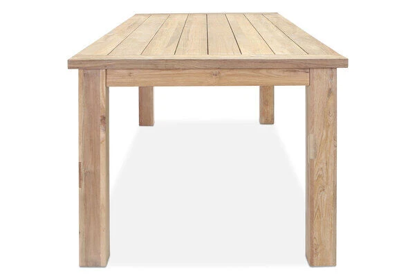 Das Teakholz sorgt für eine außergewöhnliche Optik, die Maße von ca. 200x100x77 cm, das Artikelnettogewewicht von ca. 53,5 kg gewährleistet einen sicheren und stabilen Halt. Ein ganz besonderes Merkmal ist die Tischplatte mit einer Stärke von ca. 3 cm, die Maße der Tischbeine sind ca. 10x 10 cm.