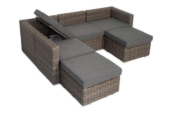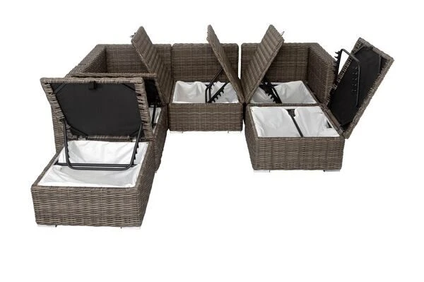 ModulelementeLine: Polyrattan Loungegarnitur mit Kissenboxfunktion in grau, für 6 Personen