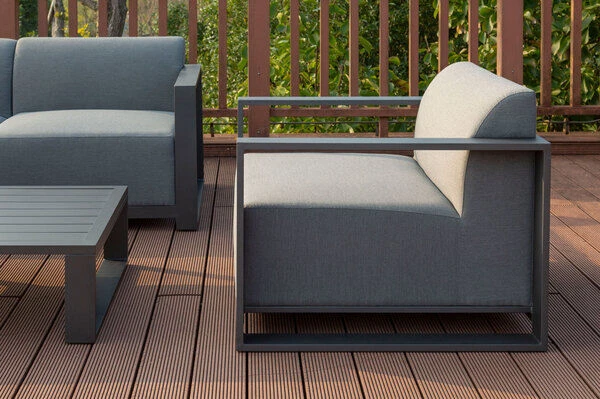 Trotzen Sie Sonne, Wind und Flecken! Die hochwertigen Materialien sorgen für den nötigen Schutz und Pflegeleichtigkeit. Die Gestelle aus Aluminium im Grauton sind widerstandsfähig gegen jegliche Umwelteinflüsse. Ihre Pulverbeschichtung verbessert zusätzlich die Stoß-, Schlag- und Kratzfestigkeit des Materials und verleiht dem Aluminium einen dauerhaften Korrosionsschutz. Das verwendete Sunbrella Textilen (260g/m²) besteht aus 100 % Acryl, ist atmungsaktiv, schmutzabweisend und schimmelbeständig. Bei der Herstellung des hautsympathischen Materials werden die Farbpigmente bereits im Vorfeld in die Acrylfasern eingebettet, wodurch das Gewebe nicht nur besonders UV-beständig wird, sondern auch jeden Wind- und Wettereinflüssen trotzt. Dank seiner Eigenschaften sieht Sunbrellastoff selbst nach Jahren in Gebrauch noch aus wie neu. Auch verschüttete Getränke machen dem Material nichts aus. Das Innere des Polsters besteht aus besonderem Schaumstoff – dem „Quick Dry Foam“. Eingedrungenes Wasser kann ungehindert austreten und unangenehme Gerüche sowie Schimmelbildung werden vermieden. Erfreuen Sie sich das ganze Jahr über an diesem Set – die hohe Qualität der Materialien macht es möglich.