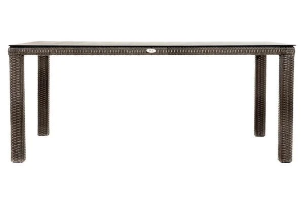 Ploß Rocking Comfort Dining Tisch, Grau/braun-meliert, Polyrattan, 180×110 Cm, Glasplatte Steinoptik