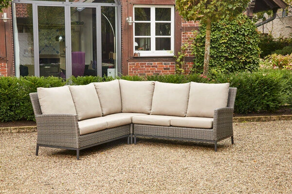 Einfach zurücklehnen und entspannen. Egal ob Sie die Beine hochlegen und ein gutes Buch in der Sonne lesen, gemütlich zusammen mit Freunden ein Kaffeekränzchen halten oder in gepflegter Atmosphäre den Alltag gemächlich an sich vorbeiziehen lassen möchten. Dieses bequeme Loungeset, bestehend aus zwei Zweisitzern und einem Eckmodul, ist der ideale Begleiter und lädt Sie jederzeit zum Verweilen ein. Die breite Sitzfläche bietet genügend Platz für 5 Personen. Bei einer Sitzhöhe von ca. 33 cm ohne Kissen lässt es sich herrlich entspannen. Passende, extra starke Kissen verleihen den Sitzmöbeln ein unvergleichliches Sitzerlebnis.
