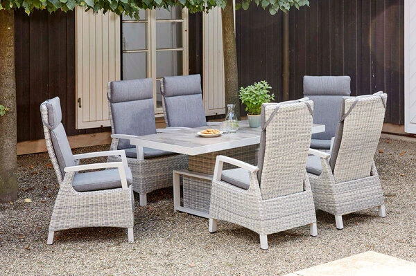 Gönnen Sie sich ein wenig Luxus in Ihrem Alltag. Die moderne Polyrattan-Serie Corido besticht durch höchsten Sitzgenuss. Die einzigartigen Wellness-Möbel vereinen gekonnt Qualität mit trendigem funktionalen Design. Die Rückenlehne des bequemen Dining Sessels lässt sich stufenlos verstellen, somit wird jedes Essen zu einem gemütlichen Miteinander.