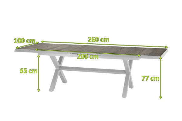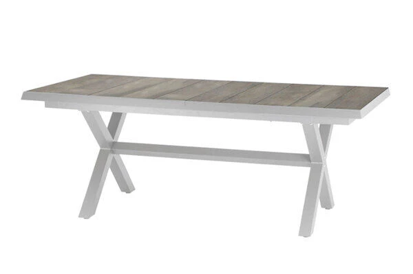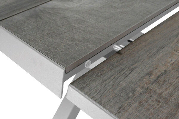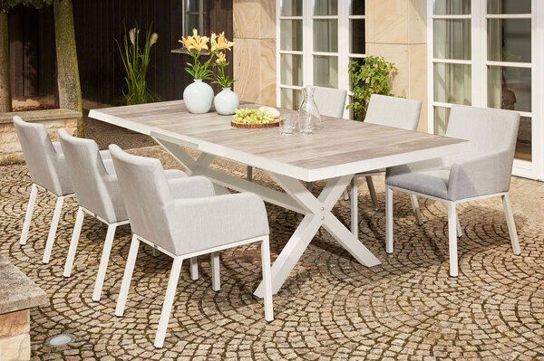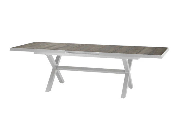 SIENA GARDEN Sincro Ausziehtisch, Matt Weiß-grau/washed Grey, Alu/Keramik, 200/260×100 Cm, Synchroner Auszugsmechanismus
