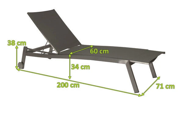Die Liege überzeugt nicht nur mit seinem zeitlosen Design und den hochwertigen Materialien, sondern vor allem auch durch ihren Komfort und ihre Funktionalität. Schlicht, unauffällig und dennoch ein Hingucker. So lässt sich die Liege wohl am besten beschreiben. Holen Sie sich mit dieser Liege Eleganz vereint mit perfektem Liegekomfort nach Hause und genießen Sie entspannte Stunden z.B. nach Ihrem Feierabend. Die hochwertigen Materialien und die sorgfältige Verarbeitung sorgen nicht nur für die besondere Optik dieser Liege, sondern machen sie zudem sehr stabil. Die Rollliege Allround wird Ihnen durch ihre hohe Widerstandsfähigkeit gegen Wind und Wetter viele Jahre Freude bereiten. Das verwendete Edelstahl der Güteklasse 304 ist rostfrei und ebenso wie das Textilgewebe der Sitz- und Liegefläche besonders pflegeleicht. Leichte Verschmutzungen lassen sich ganz einfach mit ein wenig Wasser wieder entfernen. Die Liege hat Maße von ca. 200 x 71 x 38 cm und wiegt ca. 20 kg. Dank der beiden Rollen können Sie die Liege ganz einfach verstellen. Die Rückenlehne lässt sich 5-fach verstellen (5° / 20° / 30° / 40° / 50°).