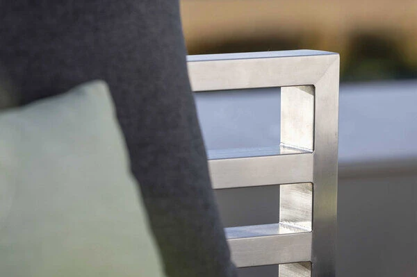 | Hochwertige Materialien Edelstahl und Polyacryl werden sorgfältig ausgesucht und verarbeitet. Aufgrund ihrer Wetterfestigkeit und Eleganz sind sie ein idealer Baustoff für Gartenmöbel. | |