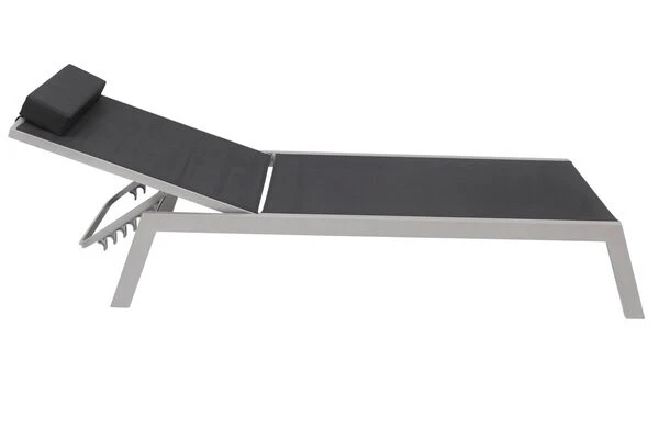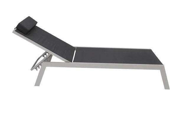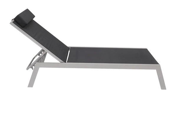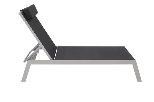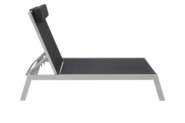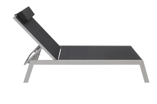 VILLANA 2er-Set Sonnenliegen, Silber/schwarz, Alu/Textil, 198x66x32cm, Mit Beistelltisch 45x45cm
